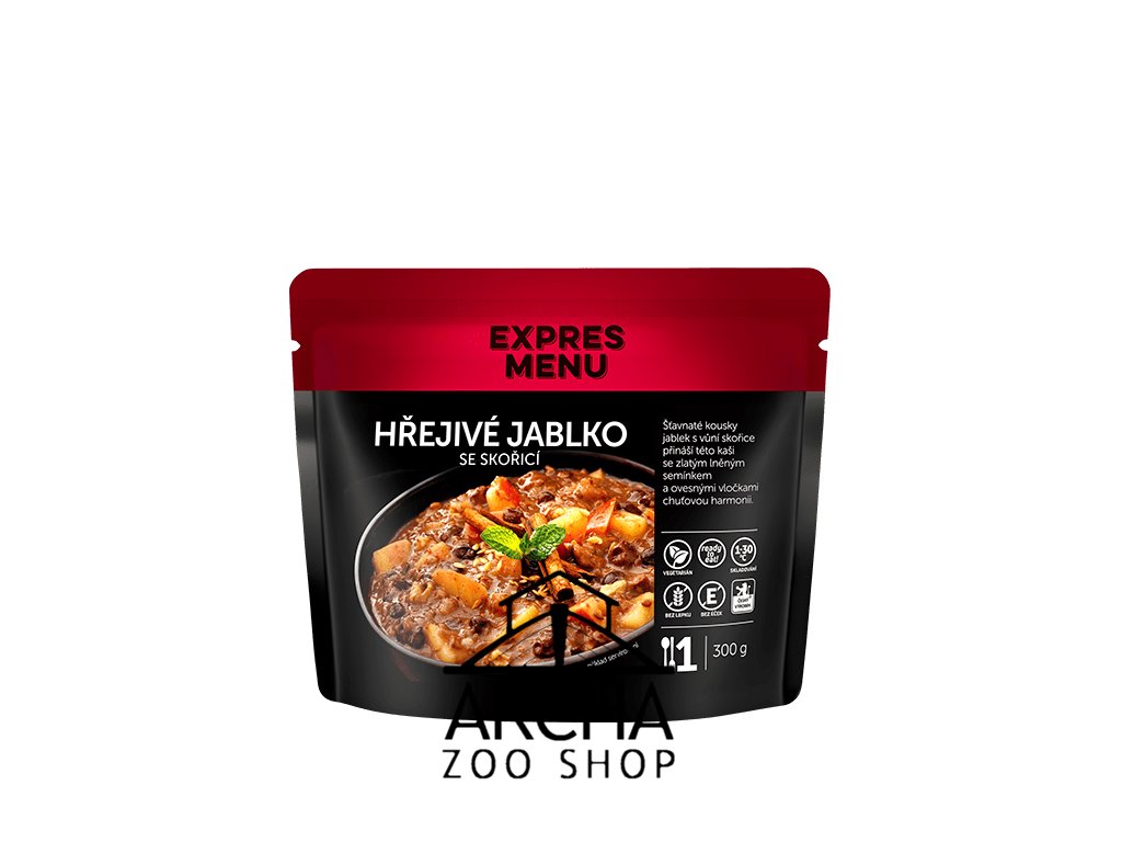voda, jablka (30%), rozinky (12%), lněné semínko zlaté (6,6%), vlašské ořechy, ovesné vločky bezlepkové, máslo ghí, sůl, skořice cejlonská, citronová kůra.