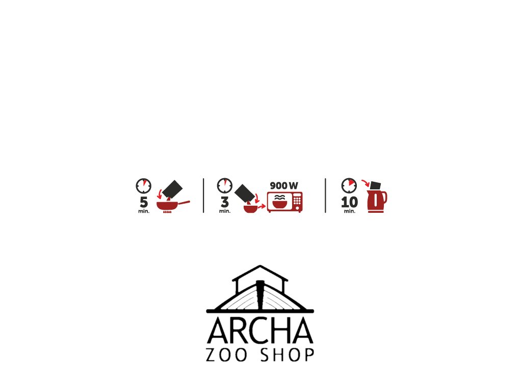 Naše produkty jsou již zcela uvařené a tepelně zpracované. Jejich příprava tedy spočívá pouze v ohřevu (samozřejmě se dají jíst i za studena). Nemusíte přidávat žádnou vodu ani jídlo převářet. Jídlo si tak připravíte během pár minut a můžete podávat.