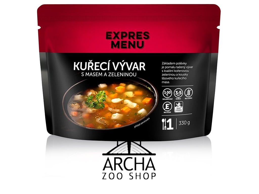 Základem polévky je pomalu tažený vývar s kvalitní kořenovou zeleninou a kousky libového kuřecího masa.