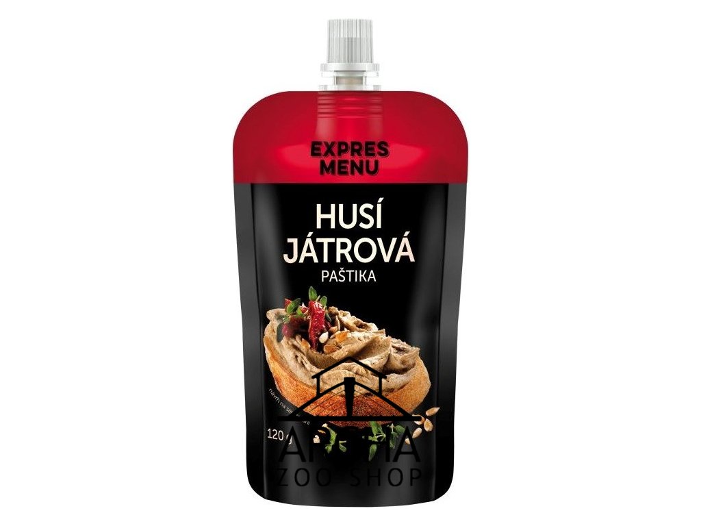 hovězí maso (30 %), husí játra (20 %), kořenová zelenina (mrkev, celer, petržel), voda, cibule, kešu ořechy (5 %), česnek, sůl, bobkový list, pepř celý, nové koření