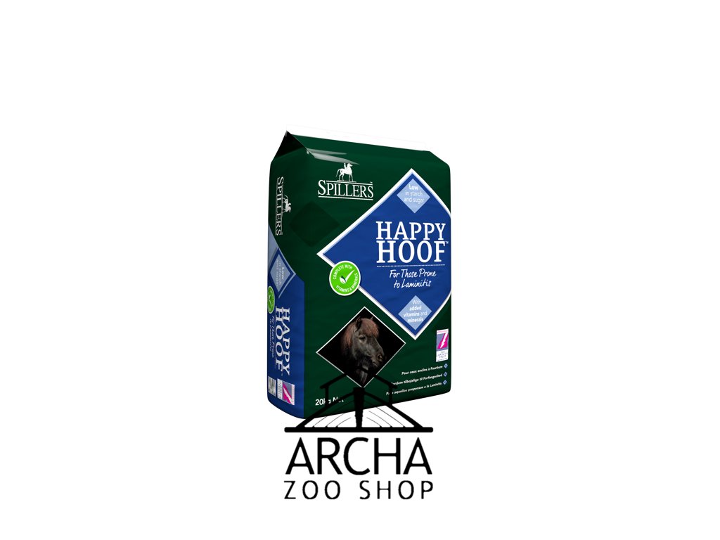 První sekané krmivo na britském trhu, které je schváleno ústavem pro výzkum laminitidy - The Laminitis Trust. V Happy Hoofu je velice nízká hladina škrobů a cukrů, především fruktózy, které jsou nebezpečné pro koně náchylné k laminitidě. Prokazatelně nízký glykemický index a přidaný hořčík pomáhají udržovat zdravý metabolismus. Vysoký obsah vlákniny zajišťuje dostatek postupně se uvolňující energie a podporuje správnou funkci trávícího ústrojí. O zdravý růst kopyt se postará extra přídavek biotinu, vápníku, zinku a mědi. Vysoce specifikované vitaminy,
