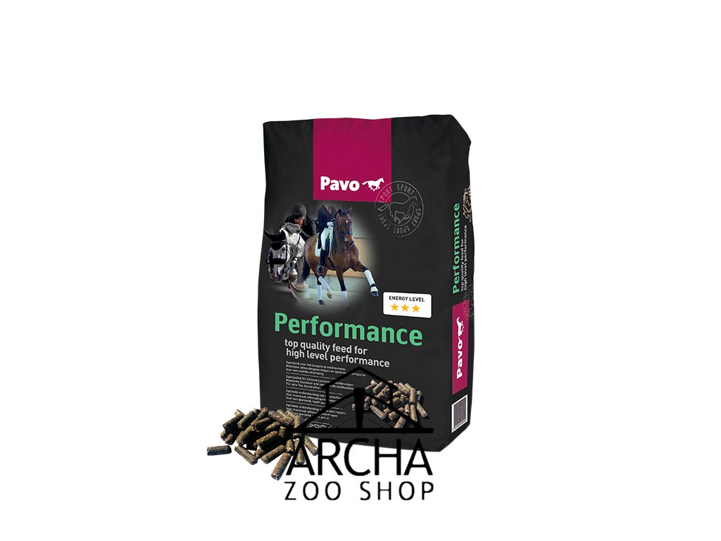Pavo Performance byl speciálně vyvinut tak, aby poskytoval sportovním koním maximální vytrvalost a špičkovou kondici. Koně, kteří musí podávat nejvyšší výkon (energetická úroveň 3), mají mimo jiné zvýšenou potřebu energie a bílkovin. Unikátní složení této sportovní granule umožní špičkovým sportovním koním získávat energii hlavně pro dlouhotrvající zátěž. Zdrojem energie je kvalitní vláknina a tuky, místo cukru a škrobů. Poskytne vašemu vrcholovému sportovci všechny ingredience, které potřebuje k optimálnímu výkonu, aniž by hrozilo jeho zakyselení!